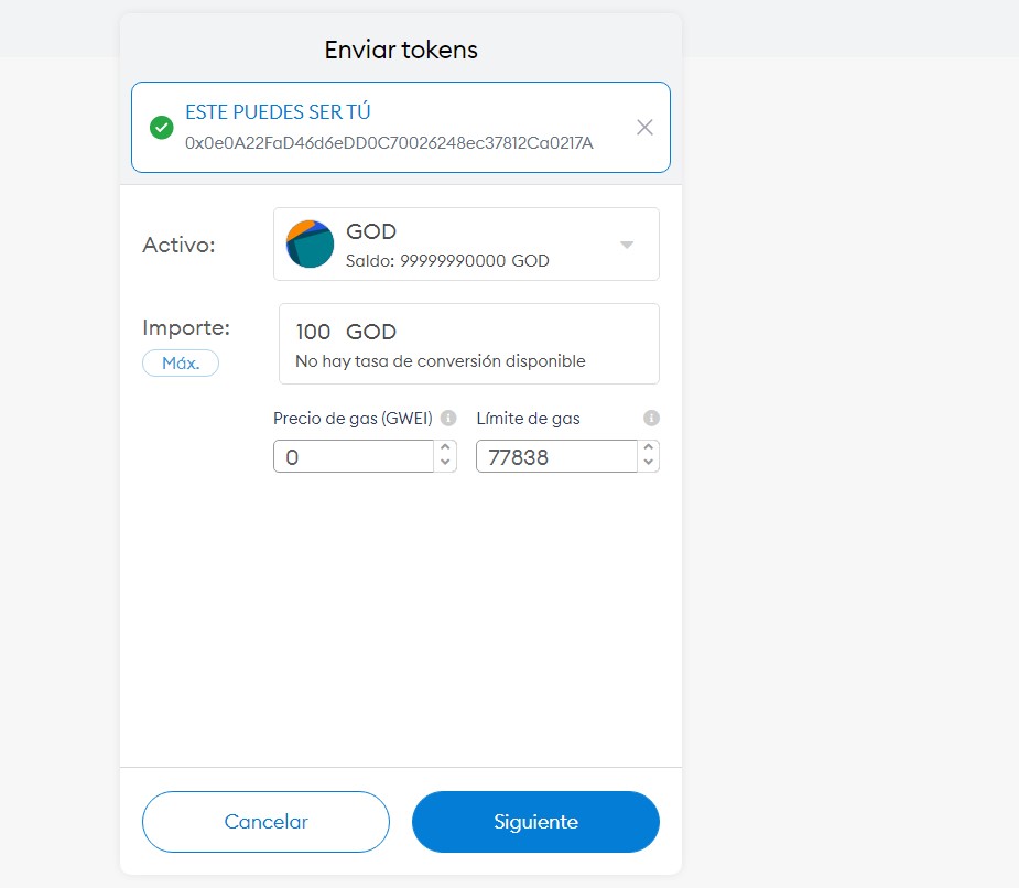 Recibe completamente gratis tus primeros Tokens para familiarizarte con el mundo cripto. GODCOIN es un token desarrollado en la cadena de bloques de ethereum con la mision de educar y ejemplificar las criptomonedas. Creado por Alexis Parraga existe un total suply de 100,000,000,000 tokens GODCOIN. Contacta con el desarrollador para recibir 100 GODCOINS GRATIS